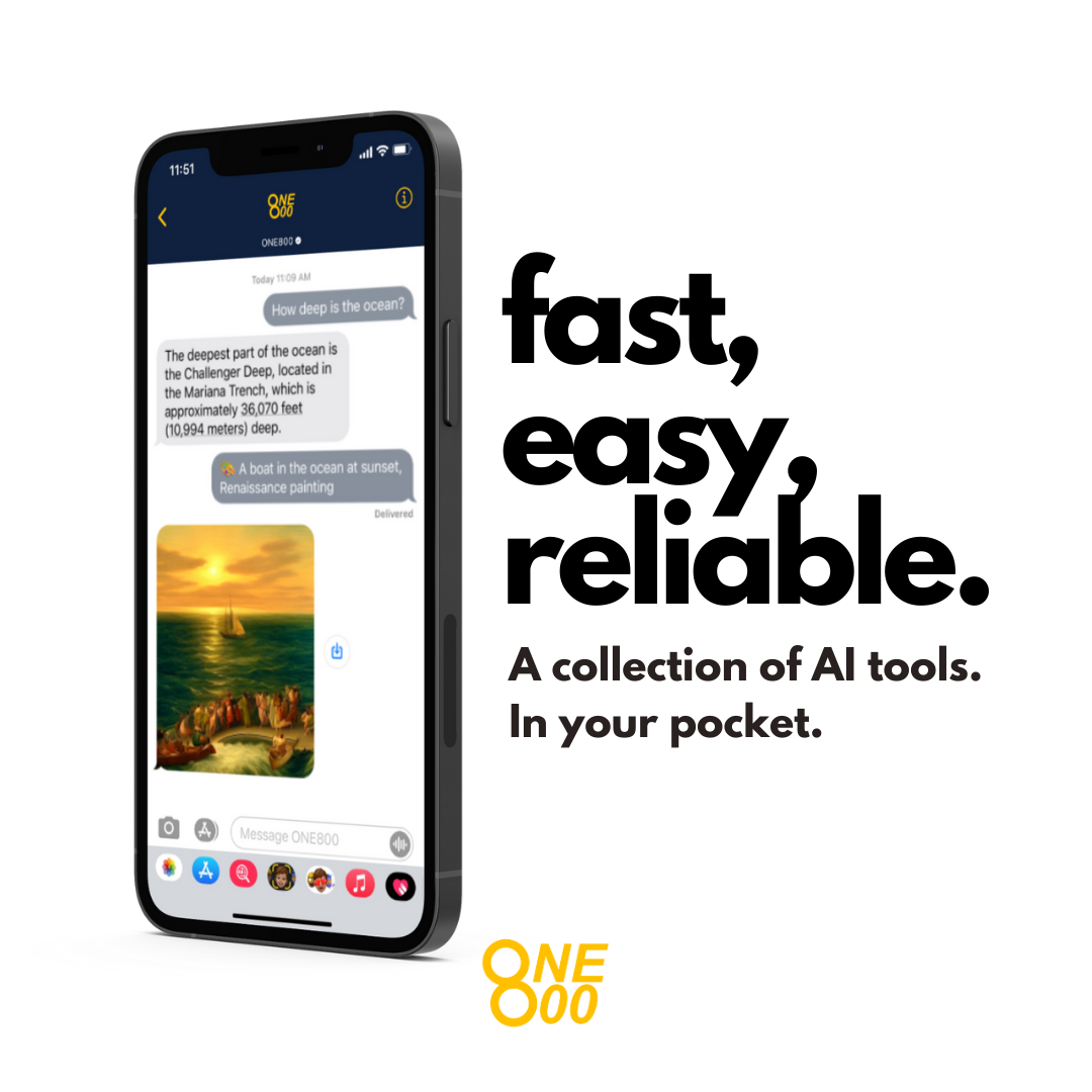 ONE800 is the first Apple Approved ChatGPT application for iMessage!